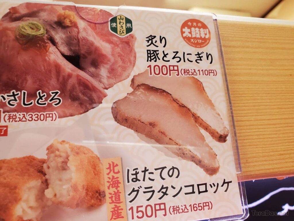 スシローの「炙り豚とろにぎり」は、近年注目を集めている人気メニューである。このメニューの特徴は、柔らかく炙られた豚肉とろを握り寿司にしたことにある。豚肉の旨味と炙りによる香ばしさが、寿司の新たな魅力を生み出している。