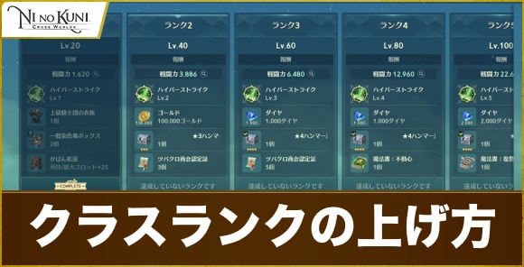 【ニノクロ】サブキャラの戦闘力アップ方法とクラスランク報酬の効果