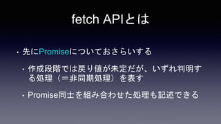 Fetch APIは、リソースの取得を非同期に行うための非常に直感的なインターフェースを提供します。Fetch APIを使用することで、サーバーからデータを取得したり、データを送信したりすることができます。Fetch APIは、Promiseを返します。したがって、Promiseを使用する方法を理解することで、Fetch APIをより効果的に使用できます。