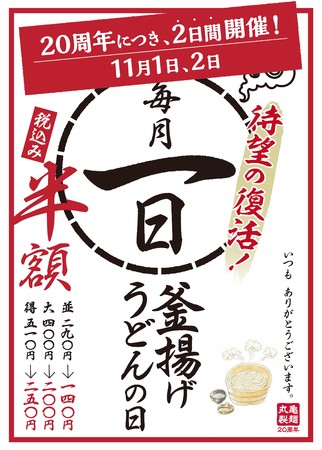 丸亀製麺20周年記念の「釜揚げうどんの日」はいつですか?