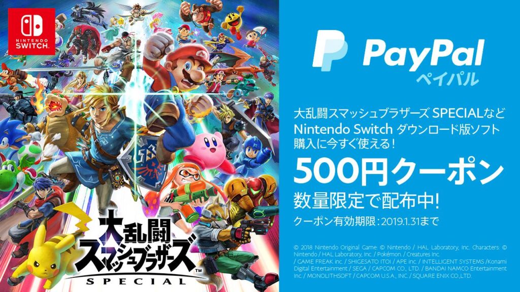 ペイパルがニンテンドースイッチで使える500円クーポン配布中