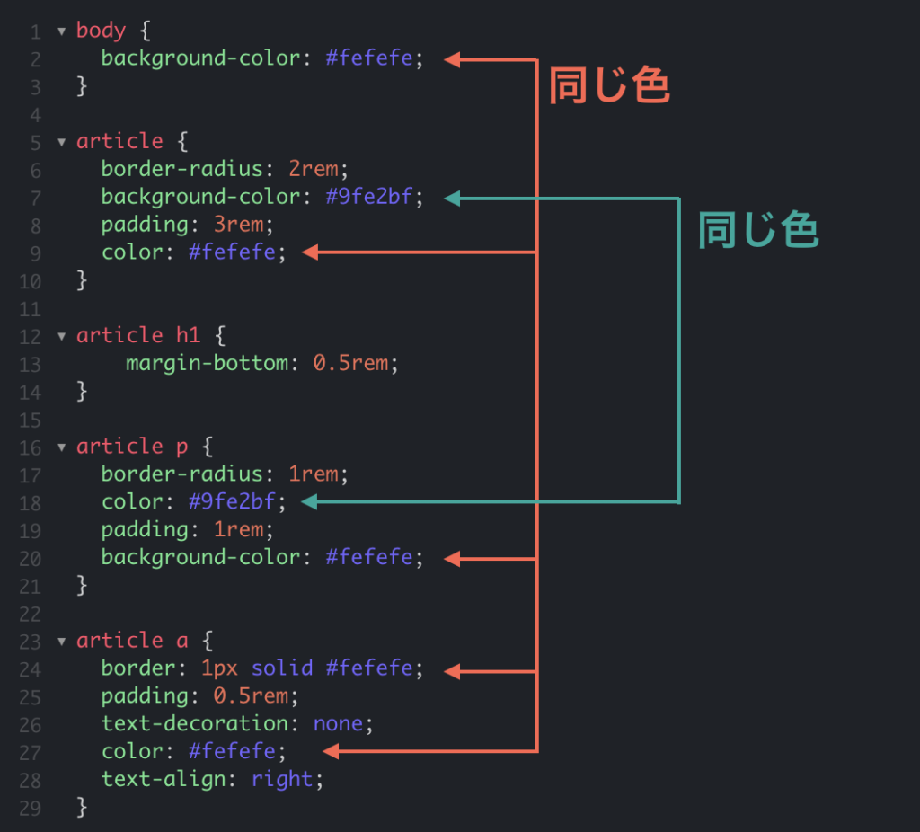 たとえば、ウェブサイトのテーマカラーを定義する場合、CSS 変数を使用して、サイト全体で一貫した色を使用することができます。以下の例では、:root セレクターを使用して、テーマカラーを定義しています。