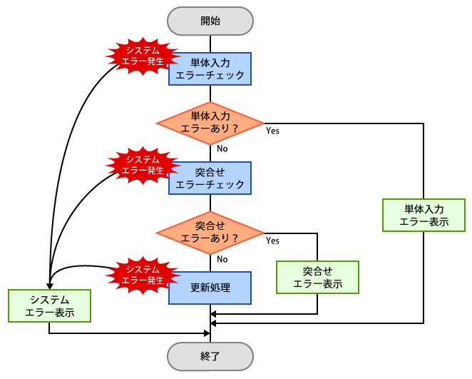 また、エラーハンドリングにおいては、エラーの種類に応じて適切な処理を行うことが重要です。例えば、データベースへの接続に失敗した場合、データベースの接続情報を確認する必要があります。一方、ユーザーが入力したデータが不正であった場合、ユーザーにエラーメッセージを表示し、再入力を促す必要があります。このように、エラーハンドリングはプログラムの信頼性と安全性を確保するために非常に重要です。