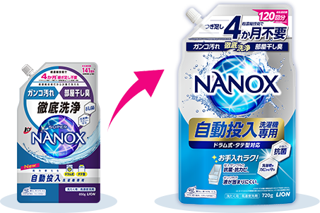 # トップ スーパーNANOX 自動投入洗濯機専用は、超高濃度の洗剤として、水30Lに6gという少量で使用可能です。このため、つけかえの頻度が軽減され、忙しい中でも洗濯の手間を省くことができます。さらに、自動投入機能を備えており、手間のかからない効率的な洗濯を可能にします。